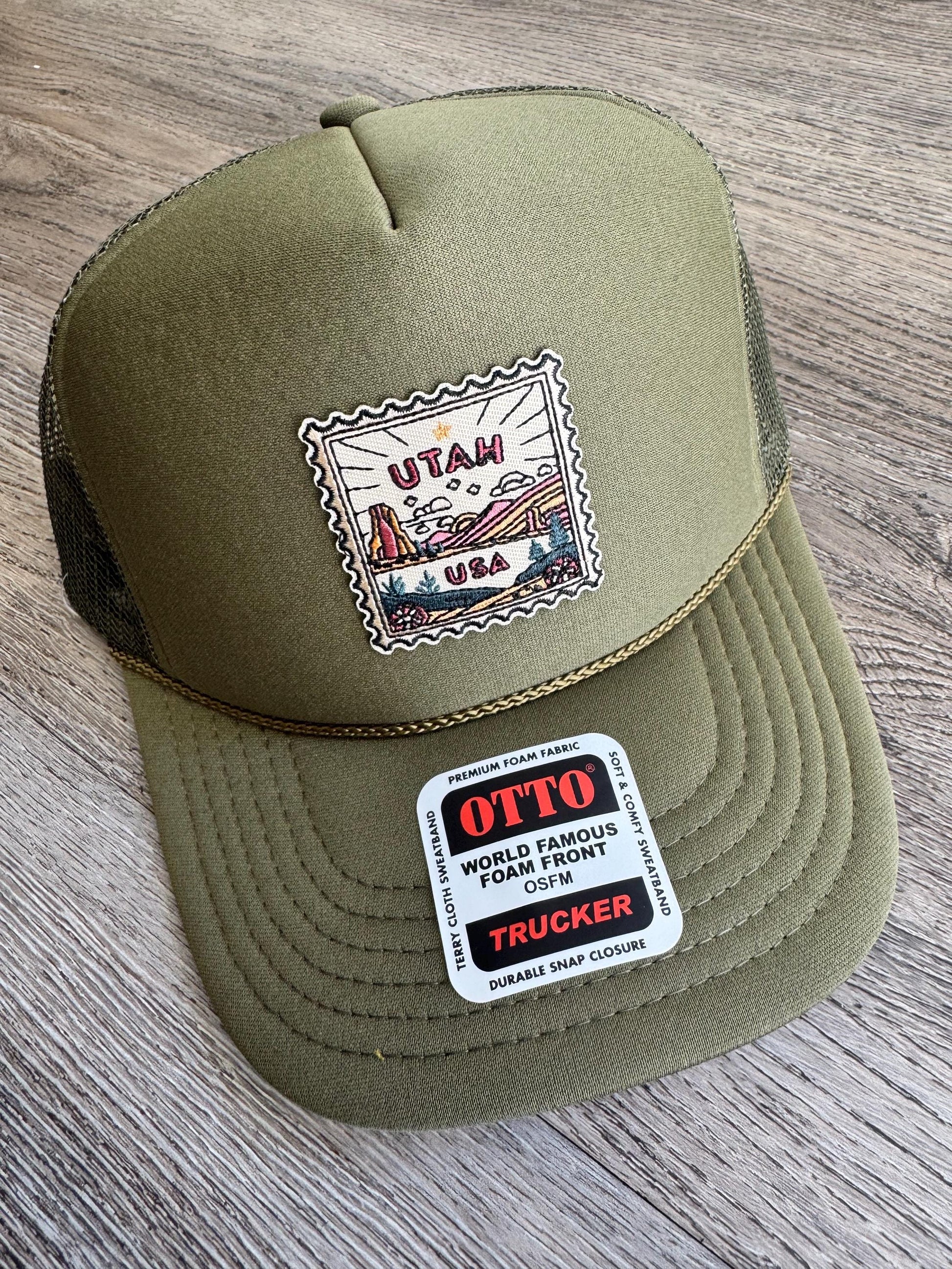Show off your love for the great outdoors with this stylish Utah USA trucker hat. Featuring a unique embroidered postcard-style patch, this hat captures the beauty and adventure of Utah in a clean, classic design.